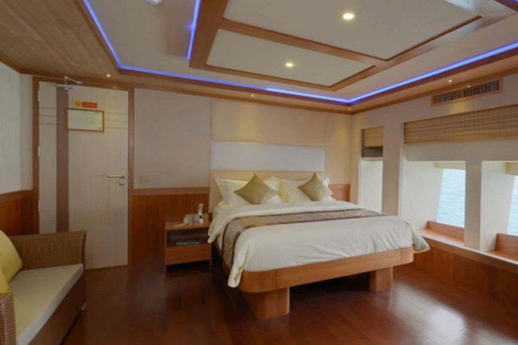 12 cabins for 24 passengers distributed in 7 deluxe cabins, 1 master cabin, 2 junior suites & 2 master suites.